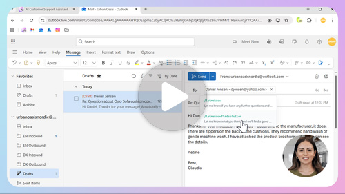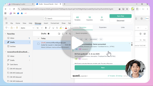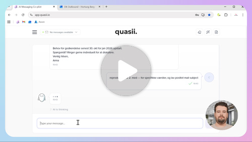 Your employees can then apply the tag “TRAIN QUASII AI” in e.g. Outlook, Gmail or Misive, which initiates QUASII’s learning process. Messages you have tagged are automatically stored in QUASII’s so-called vector store, which makes them semantically searchable. This means that the QUASII AI gradually becomes smarter. With unique precision it can finds previous messages and draft suggestions for new responses that accurately reflect your company’s facts and tone.
